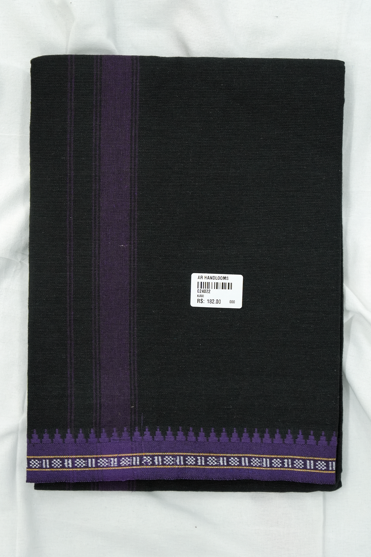 Black Single Dhothi – Purple Border & Kara