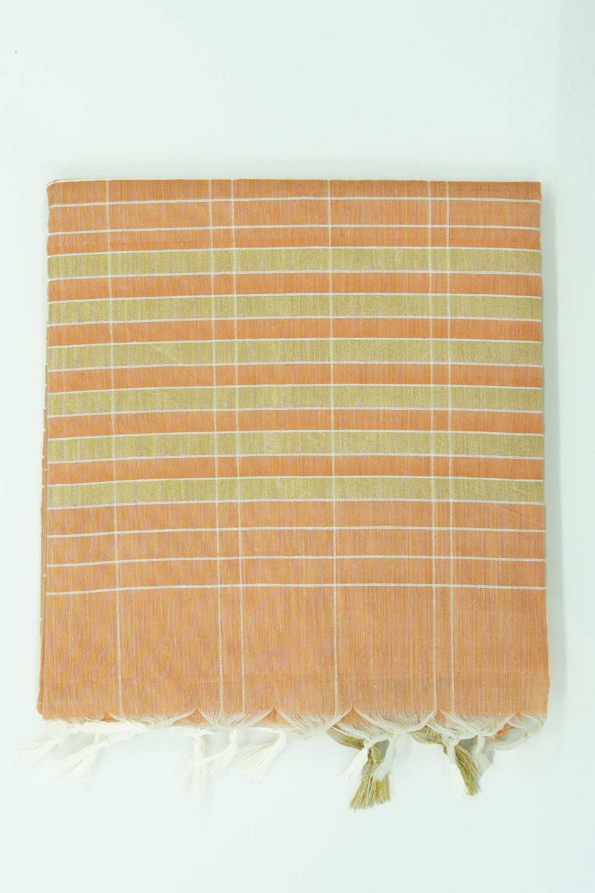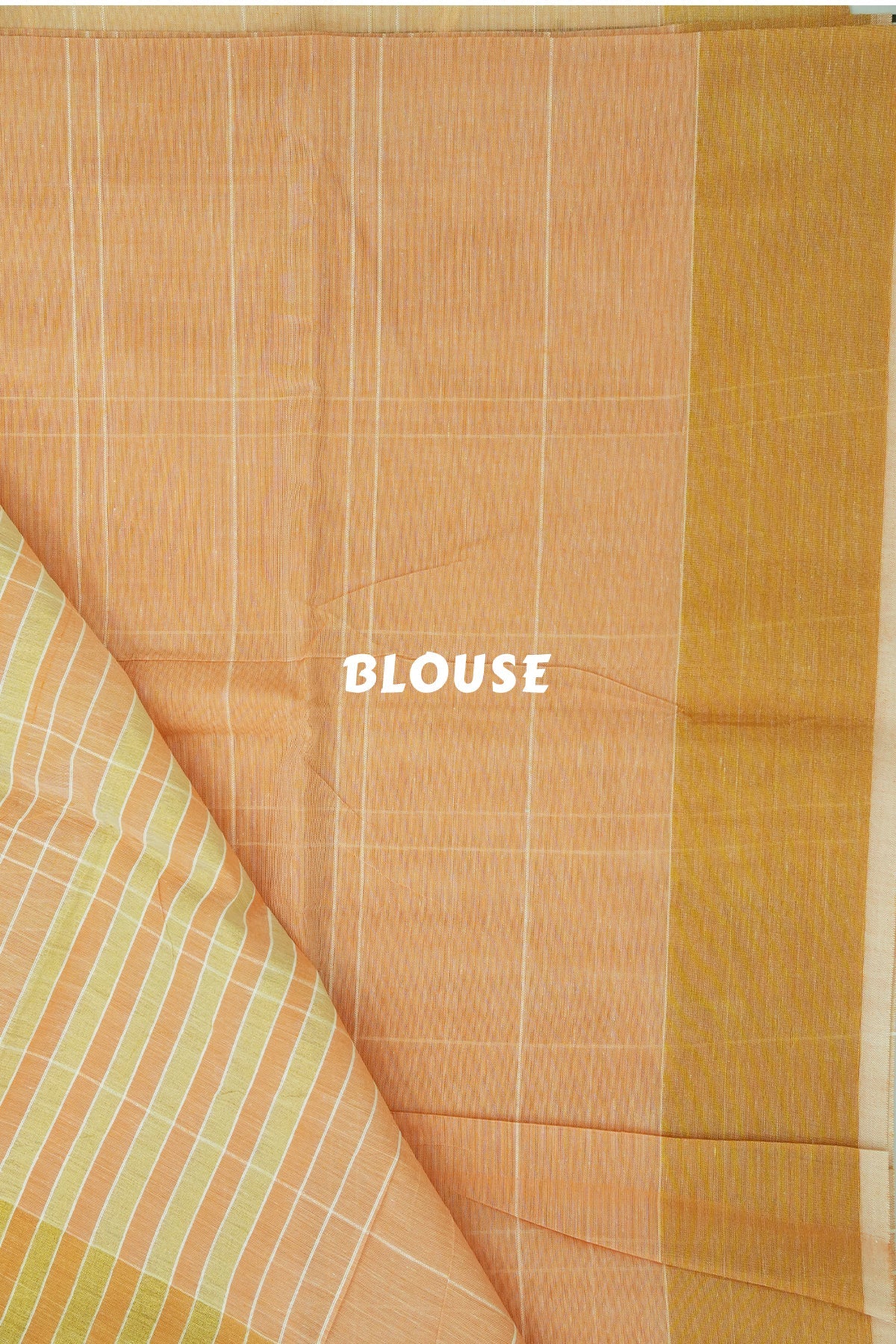 Introducing our elegant orange cotton saree, designed with subtle golden zari line patterns that exude simplicity and charm. This saree is a perfect blend of tradition and comfort, making it ideal for daily wear and office use.
