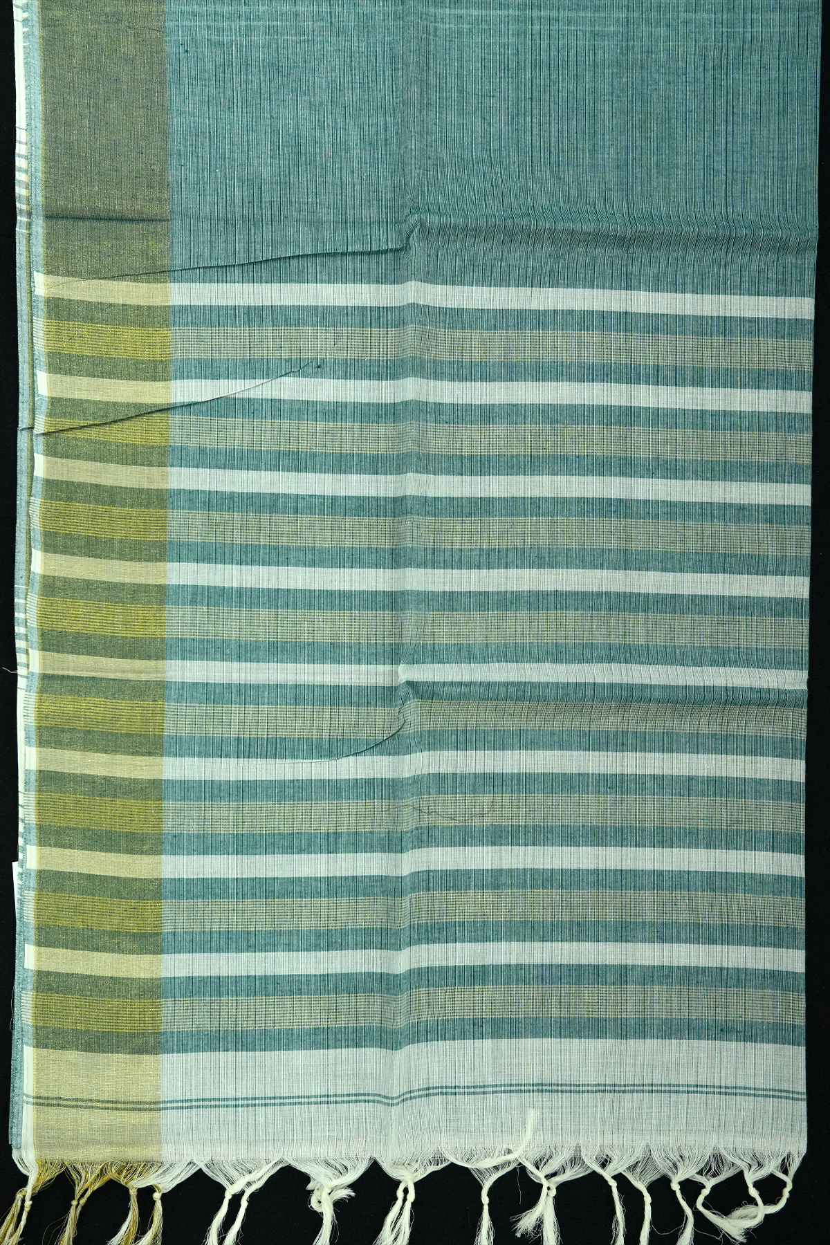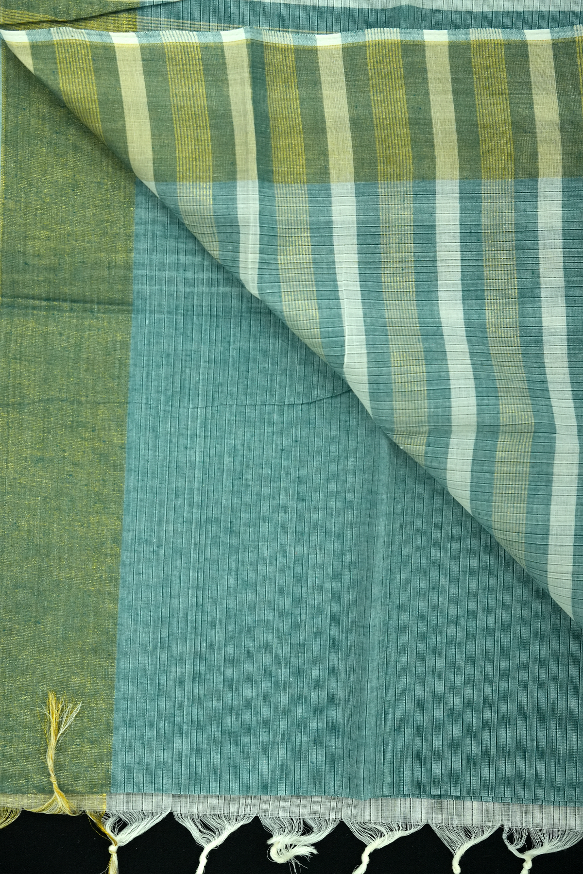 Cotton Saree – Teal with Golden Zari Lines (#0019)