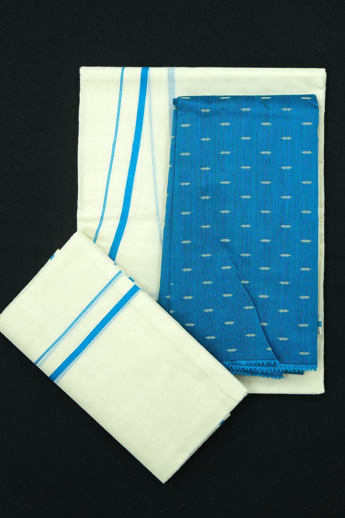 The Puliyilakara Set Mund with Blouse Material is a timeless piece of Kerala’s heritage, crafted in soft cotton for comfort and grace. Featuring the classic Puliyilakara design, this attire blends tradition with simplicity, making it perfect for festivals, cultural occasions, and gifting.