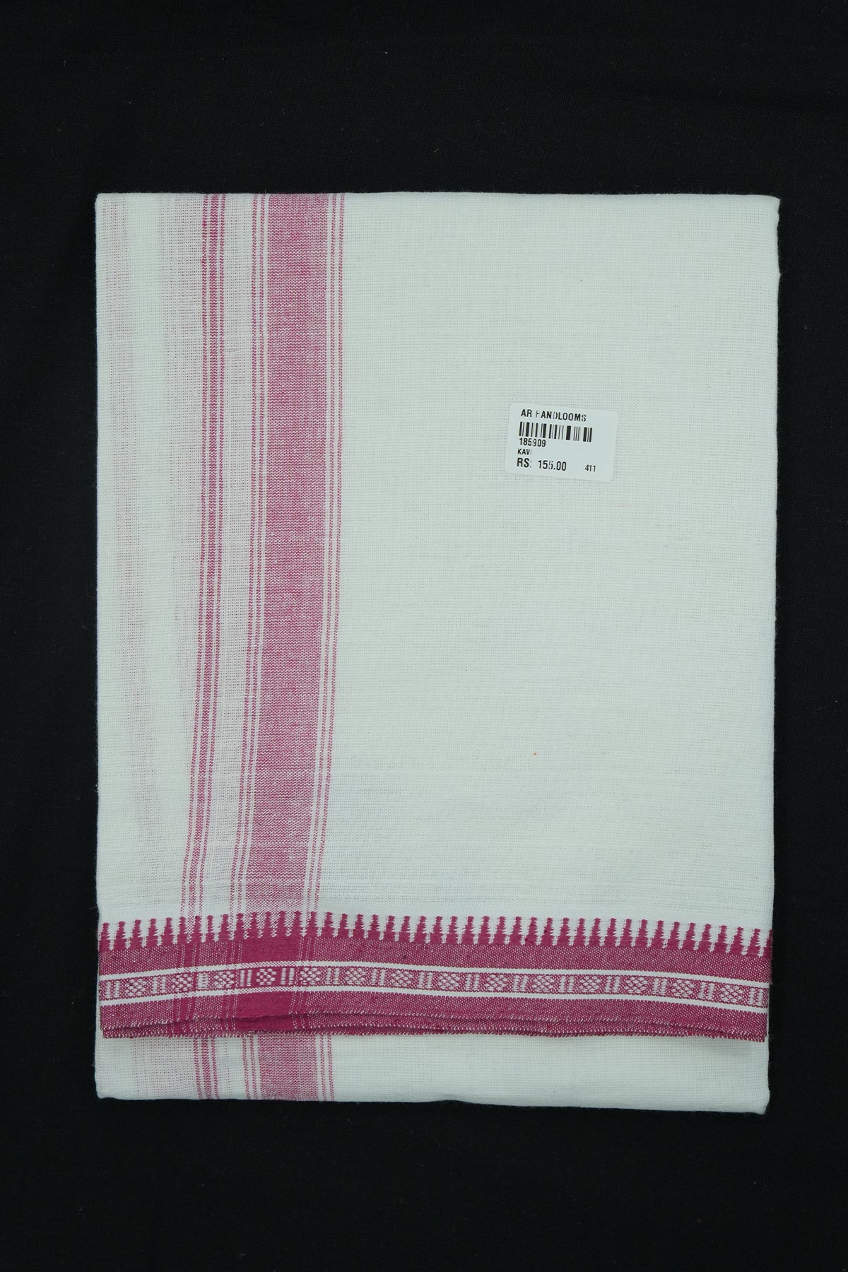 Single Dhothi (Kaily) – White with Rose Kara & Temple Border