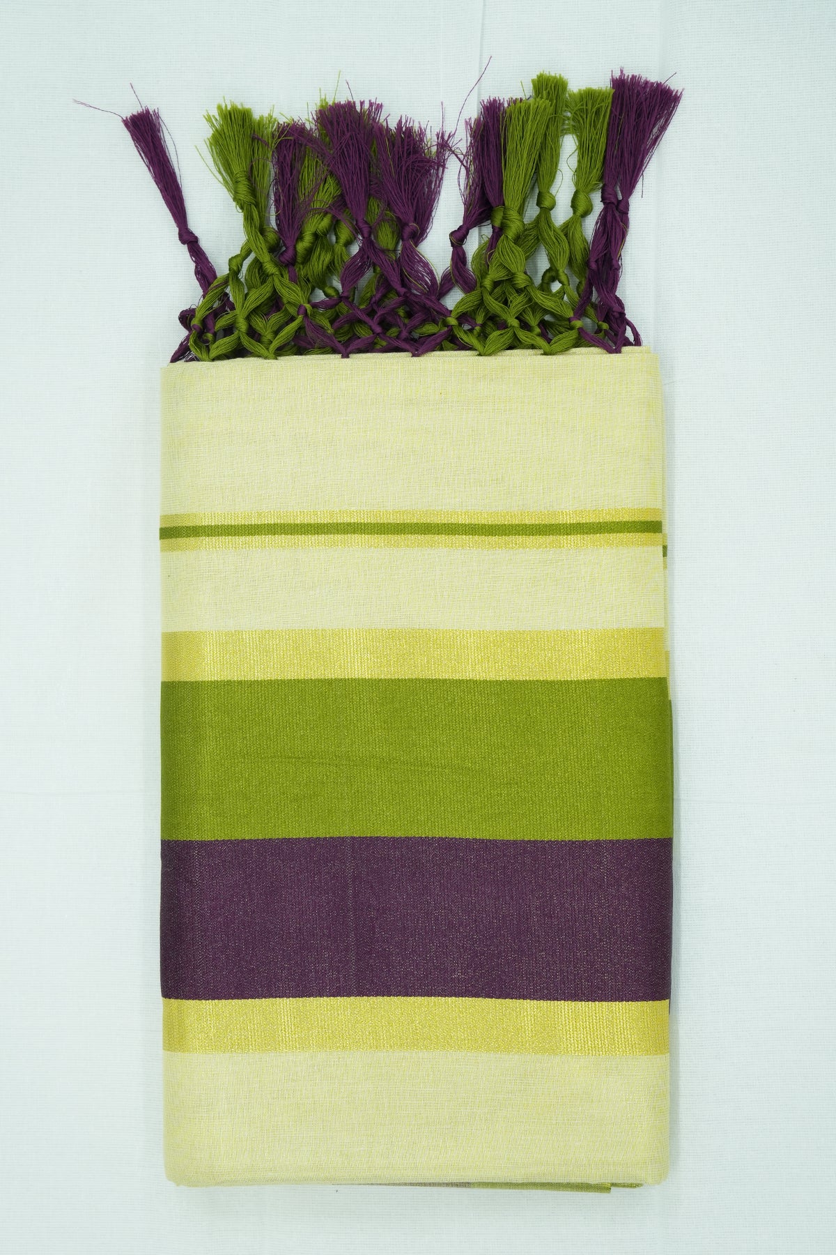 Dual Color Kara Set Saree – Green & Purple (Vadamalli) | Golden Tissue