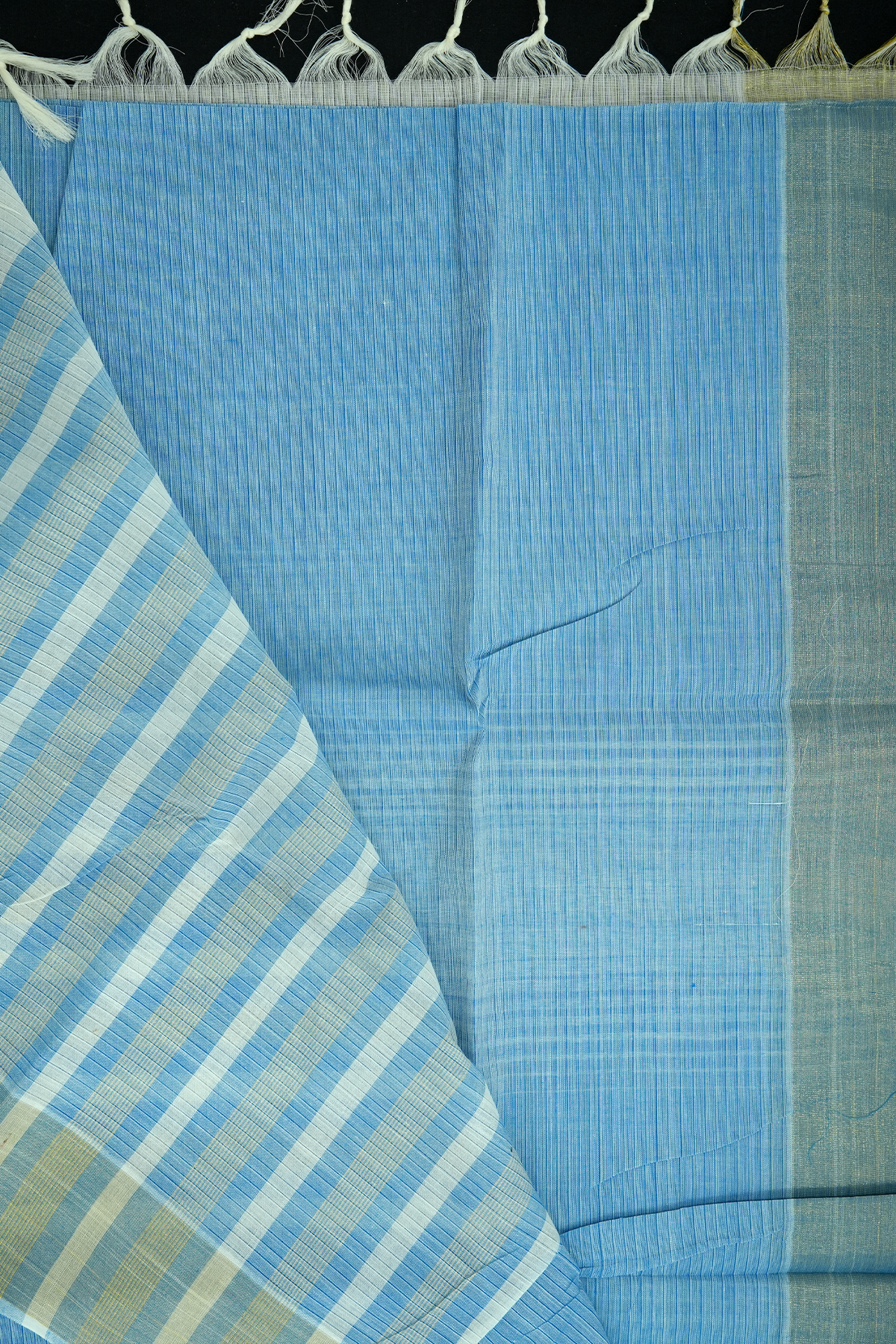 Cotton Saree – Baby Blue with Golden Zari Lines (#0001)
