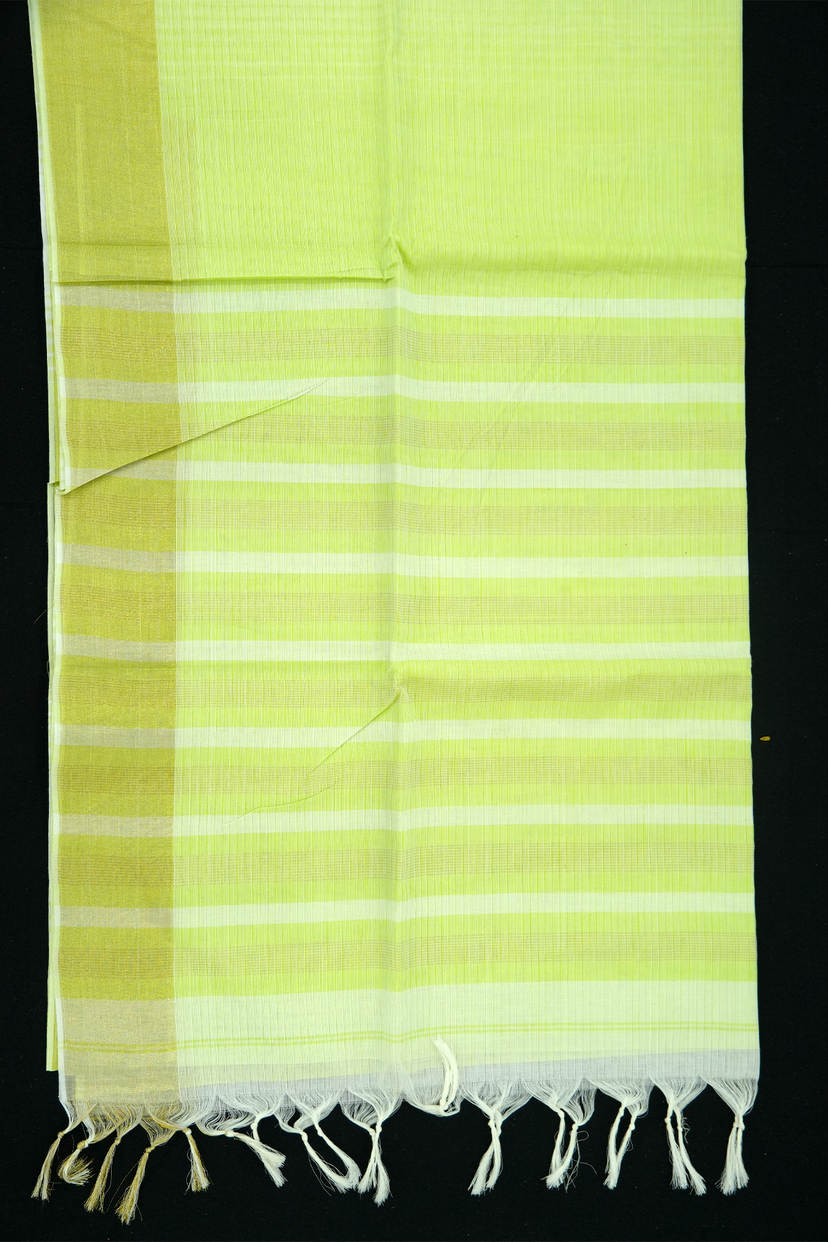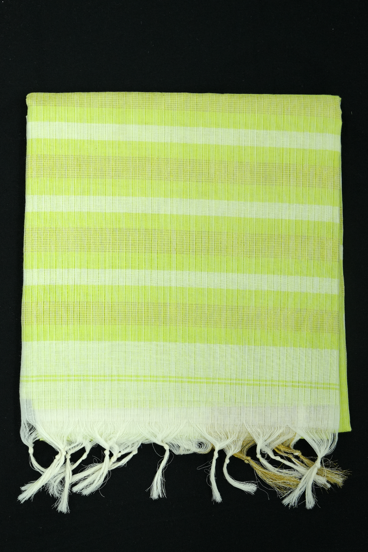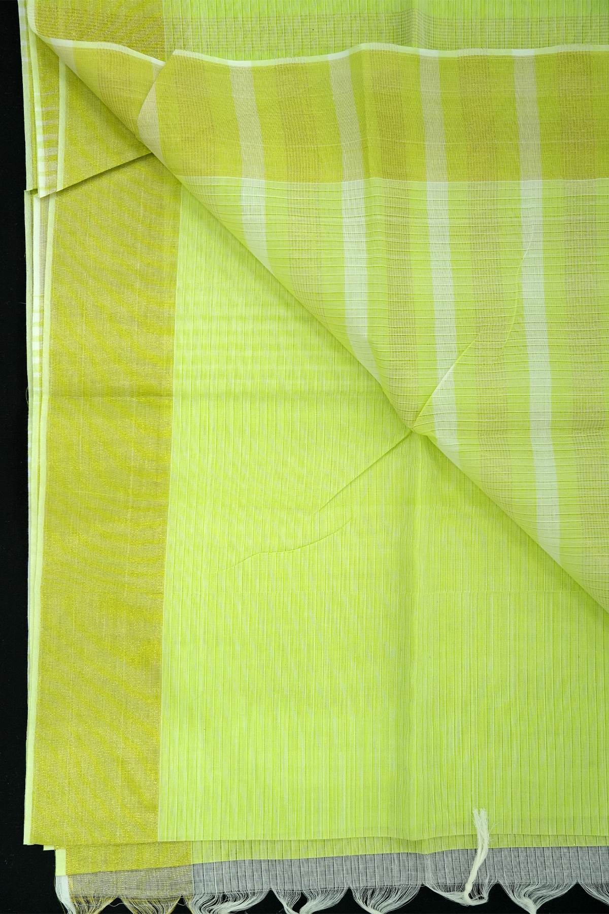 Cotton Saree – Lime Green with Golden Zari Lines (#0025)