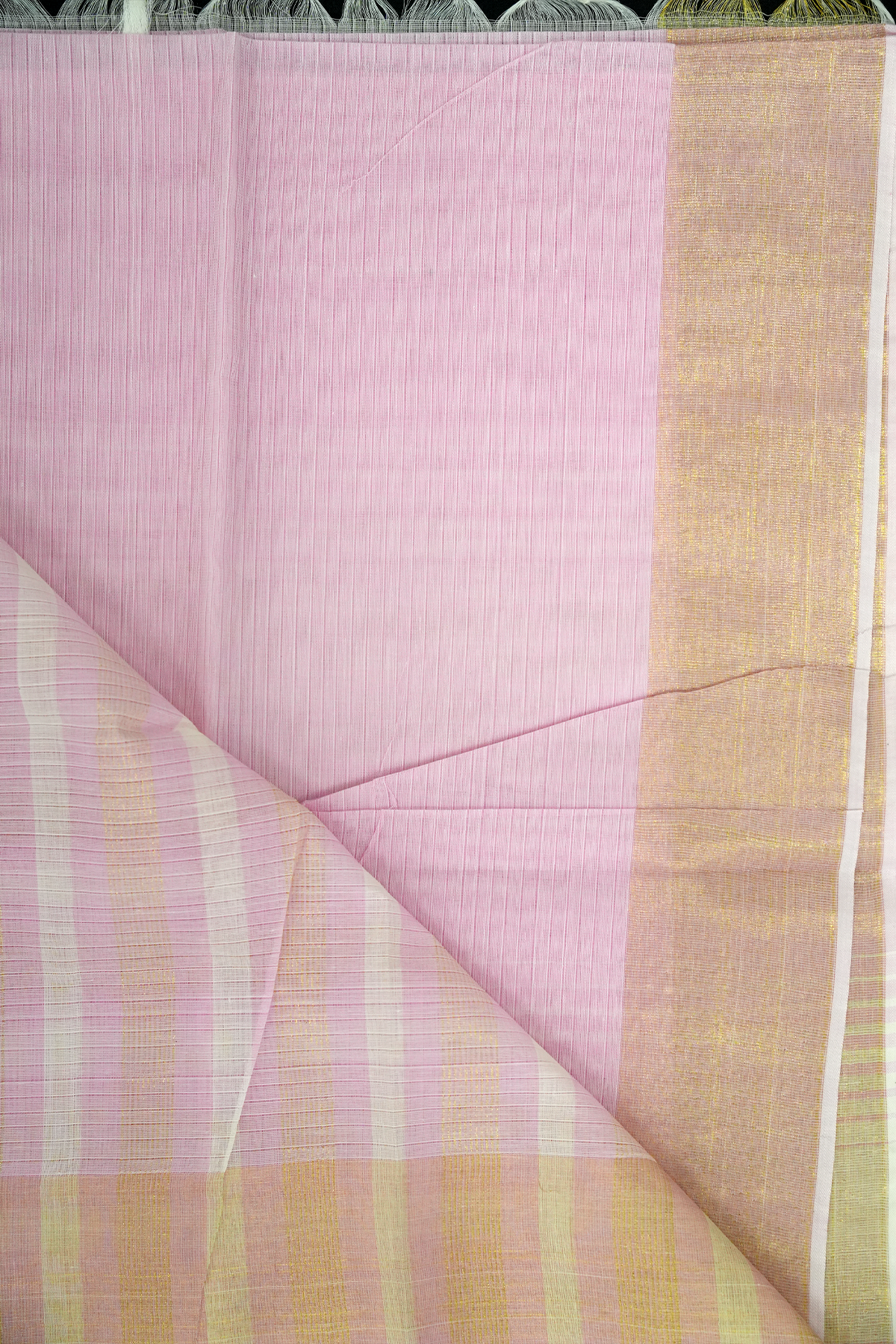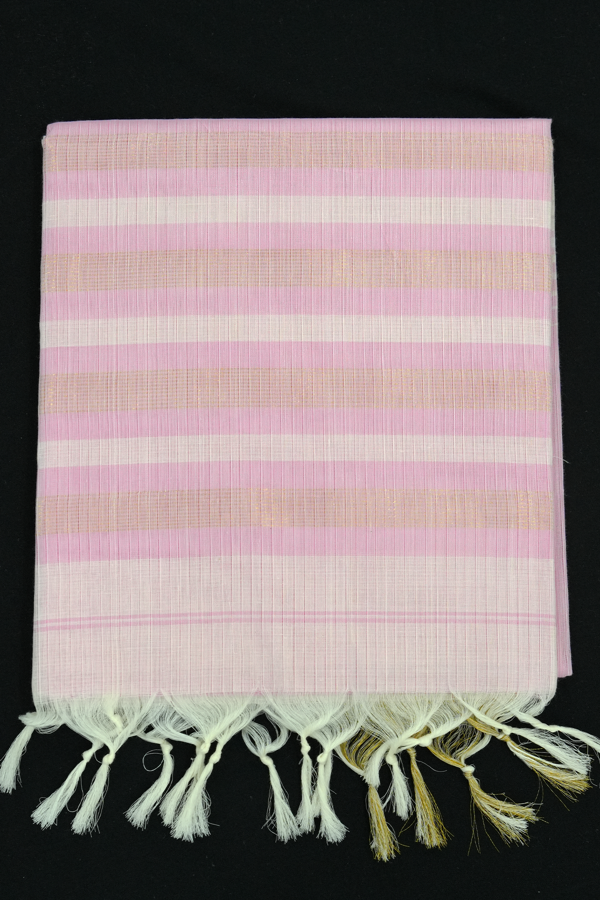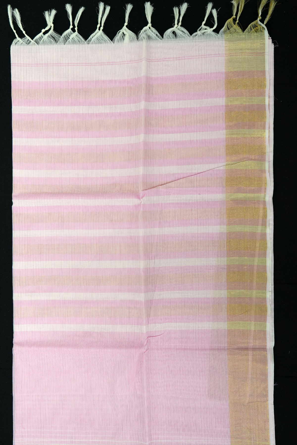 Cotton Saree – Baby Pink with Golden Zari Lines (#0010)