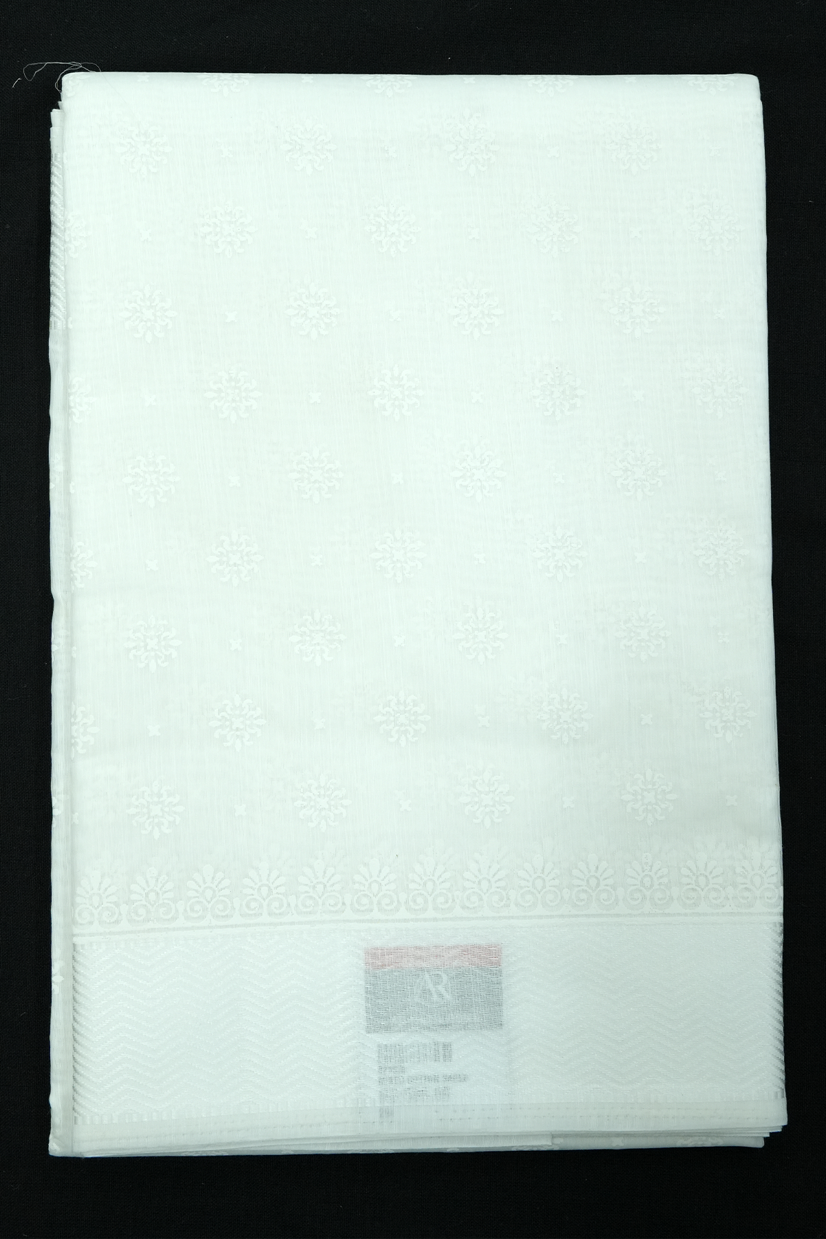 Each saree comes with a plain white blouse material and is designed for both comfort and sophistication.