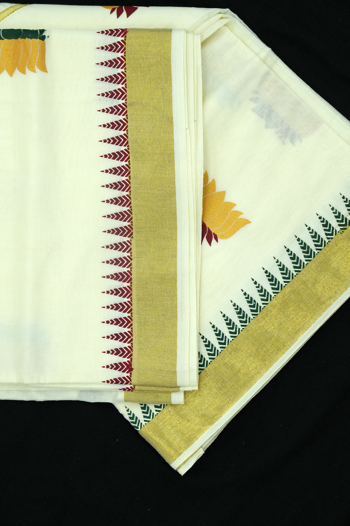 Lotus Print Set Saree – Golden Lotus Design with Temple Border (#0004)